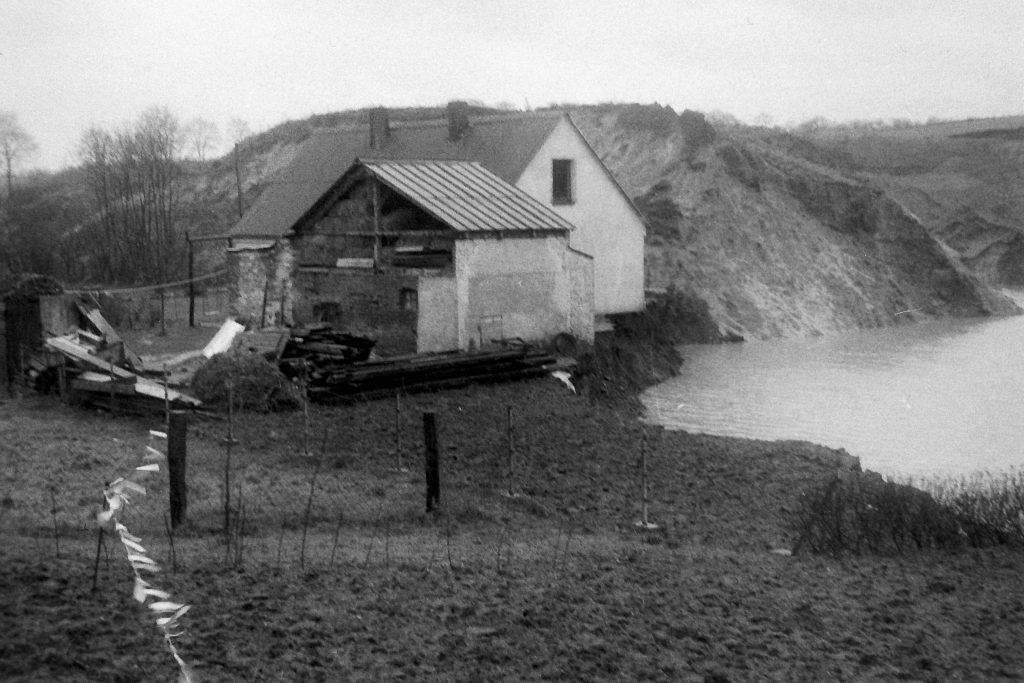 Die Kiesgrube wurde zu einem zwei Hektar großen Wasserloch, an dessen Rand das Haus von Schweimer bereits 2 Meter mit einer Ecke über die immer noch weiter abbröckelnde Kante ragt und wird kaum noch zu retten sein.