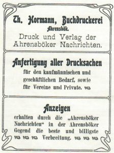 Die Betriebsgründer verkauften aber schon bald an den Buchdrucker A. Dauer, von dem im Oktober 1882 Th. Hormann die Druckerei mit Zeitungsverlag erwarb. Am jetzigen Standort in Ahrensbök, Lübecker Straße 3, befindet sich der Betrieb erst seit 1890, seit dem Kauf eines eigenen Grundstücks und Hauses, das sich bis heute noch im Familienbesitz befindet.